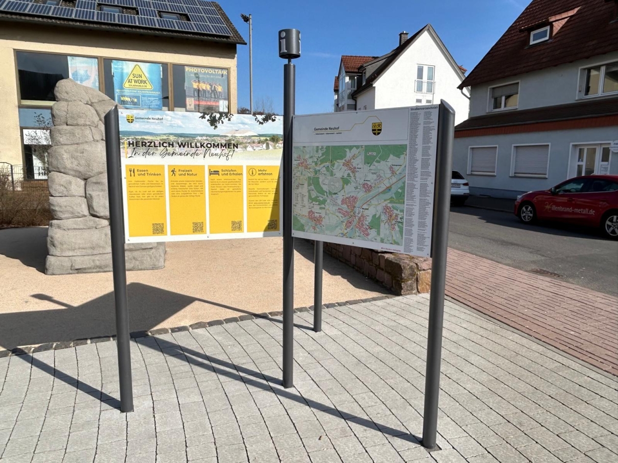 Anhand der Infotafeln kann sich jeder über die Kaligemeinde Neuhof informieren. Sei es über die Neuhofer Geschichte, die schönsten Rundwege oder aber auch über den aktuellen Ortsplan.
