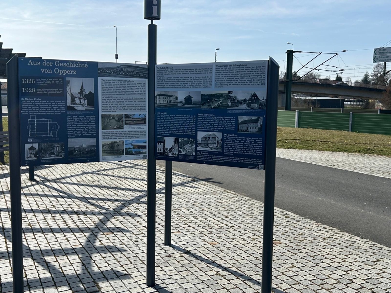 Im September 2025 wurden unter Anderem am Neuhofer Dallesplatz und Bahnhof Infotafeln aufgestellt. Entstanden ist die Idee zur Erneuerung der bestehenden Infotafeln in Zusammenarbeit mit dem Geschichtskreis und dem Rhönklub Neuhof. Im Auftrag der Gemeinde Neuhof haben wir hierfür die Pfosten-Rahmenkonstruktion hergestellt.